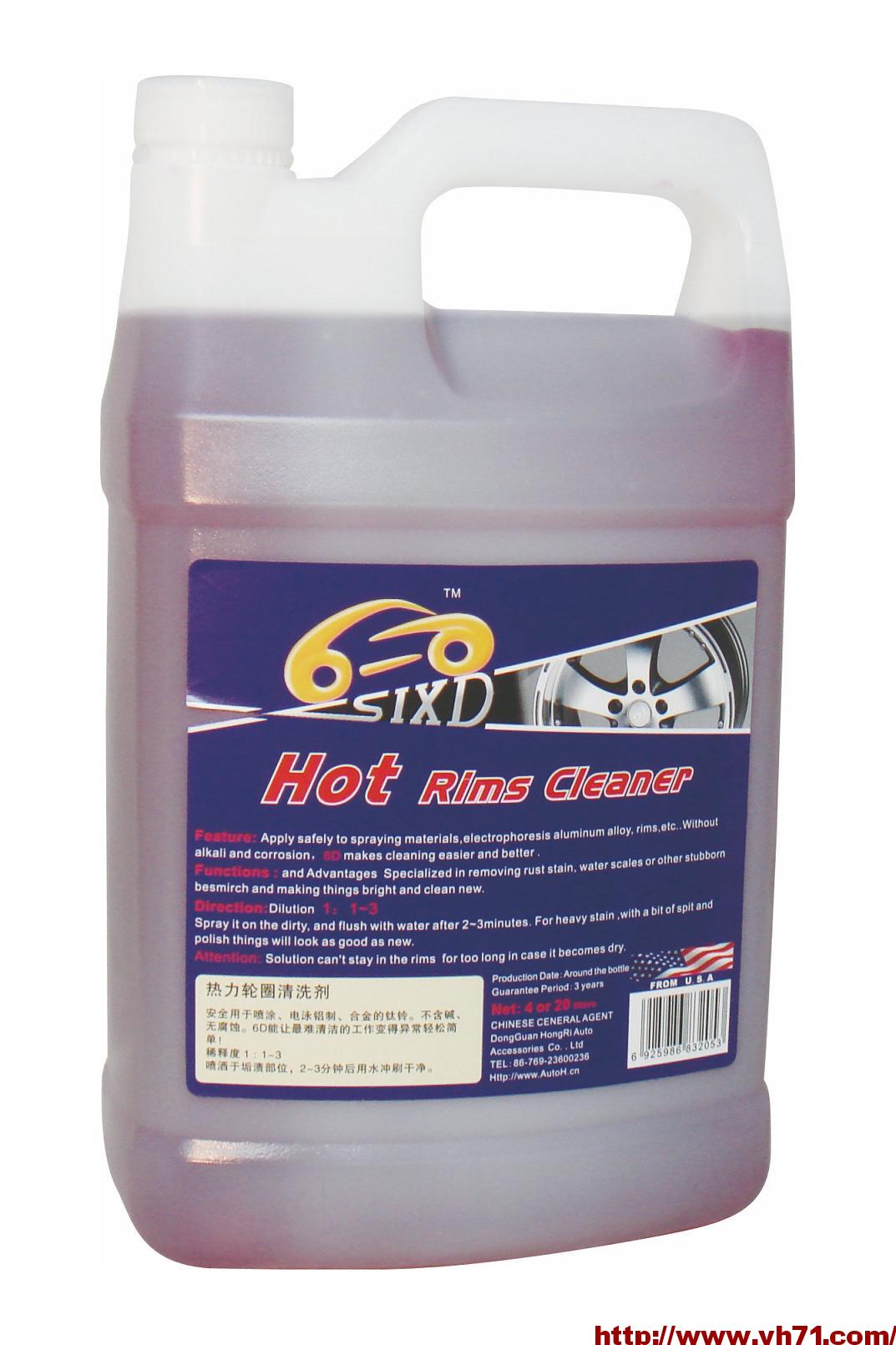 热力轮圈清洗剂:安全用于喷涂、电泳铝制、合金的钛铃。不含碱、无腐蚀。6D能让最难清洁的工作变得异常轻松简单!