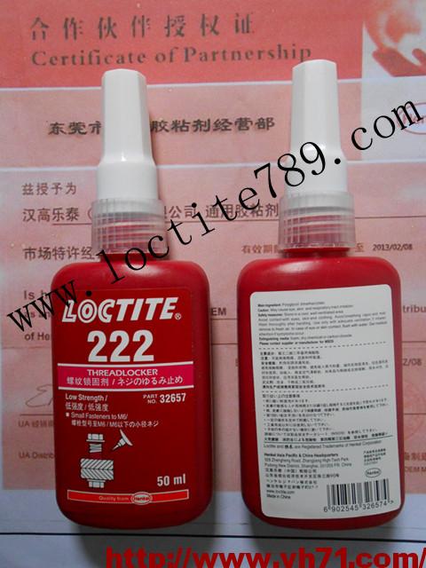 浙江乐泰(抗州loctite222)嘉兴乐泰螺纹胶,Loctite222螺纹锁固剂 低强度,触变性粘度,适用于大多数金属表面,可用普通工具拆卸。用于M2-M12螺纹的锁固与密封。应用于紧固件直径为1/4"(6mm)或更小比较理想,具有一定的润滑性以达到精确的夹持负荷。